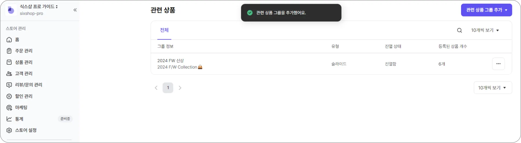 Step 4. 저장을 클릭하면 관련 상품 그룹이 생성됩니다.