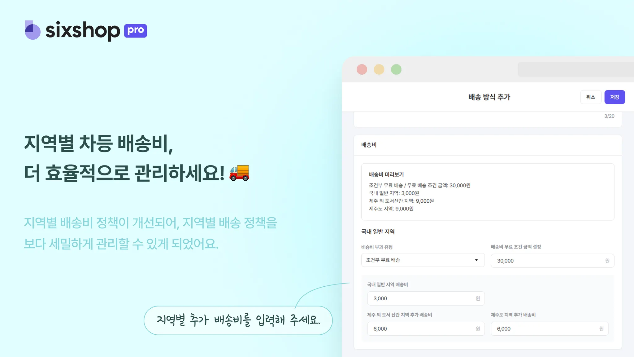 지역별 차등 배송비 설정이 한층 개선되었어요.