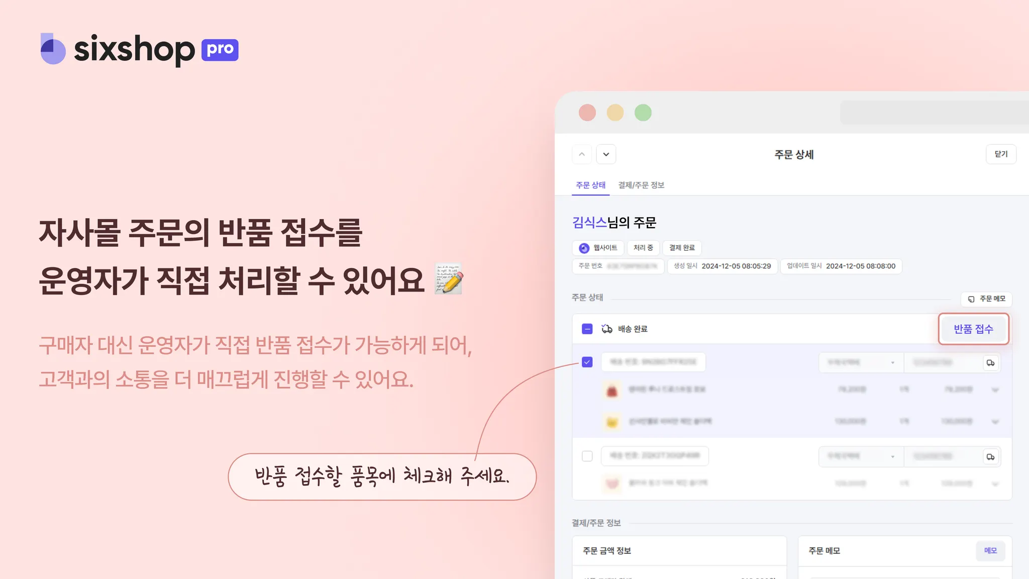 운영자가 직접 반품 접수 기능이 지원되어, 더 유연한 고객 응대가 가능해졌어요!