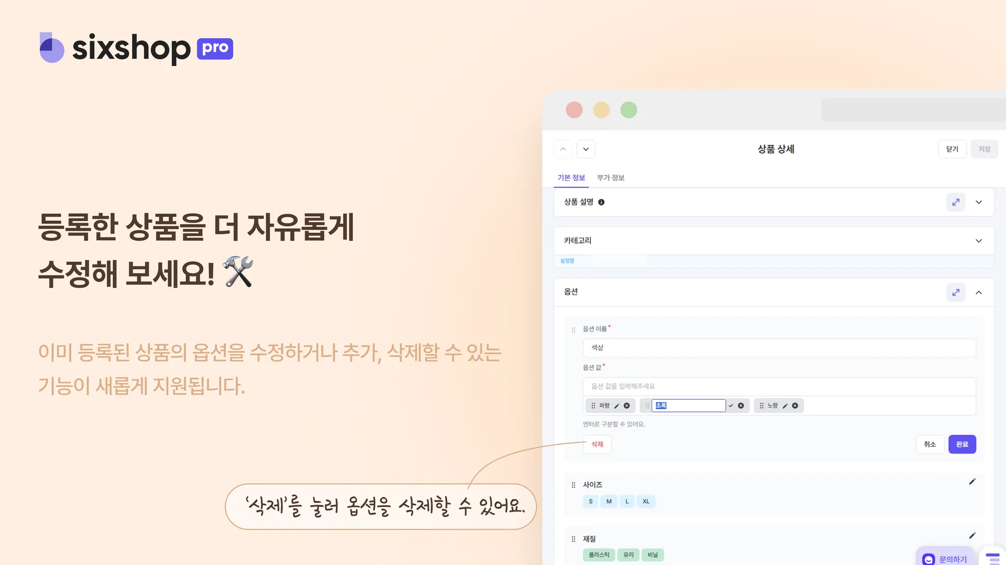 이제 필요할 때 옵션을 바로 수정하고 상품 관리를 더 효율적으로 해보세요.