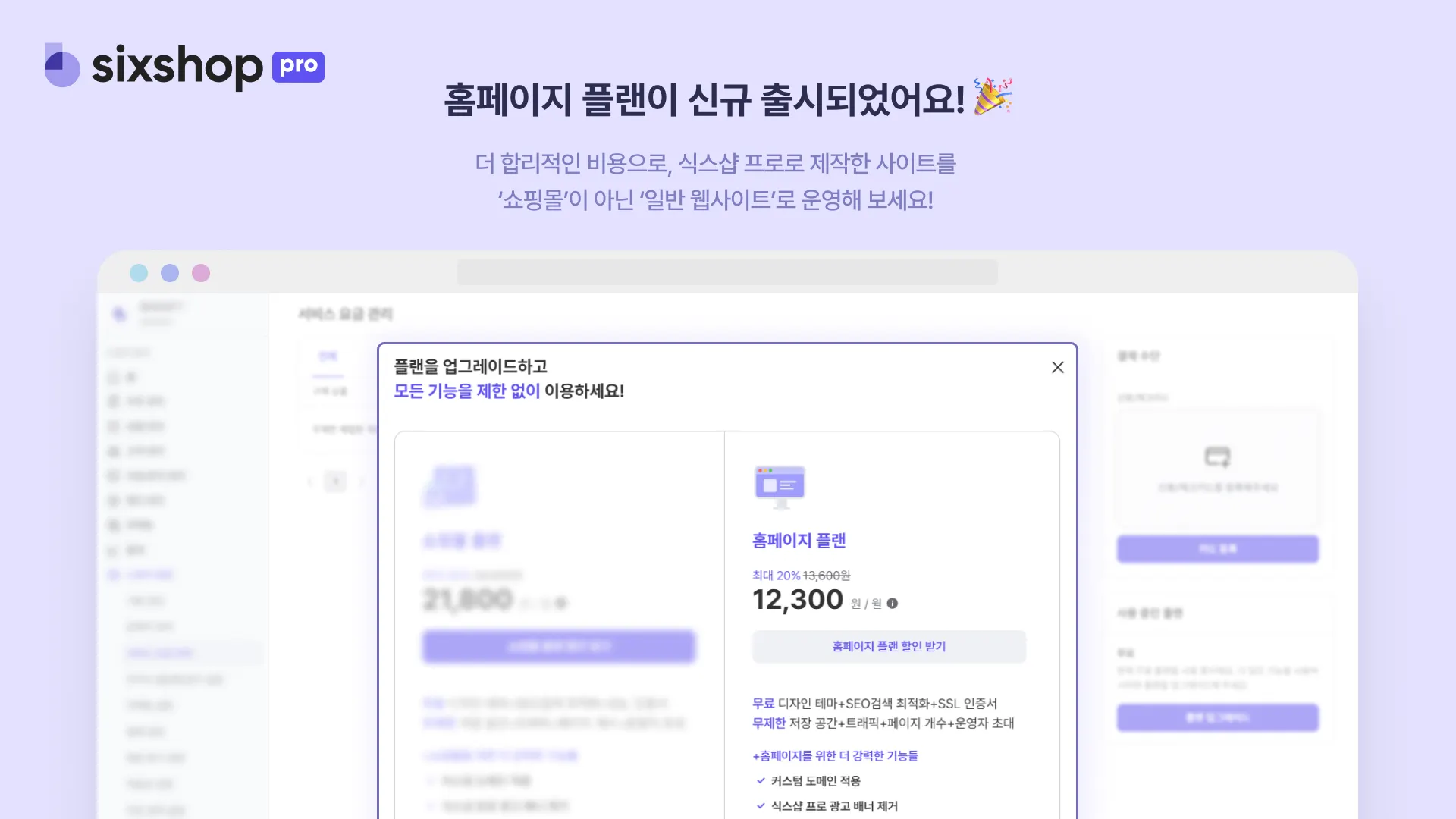 식스샵 프로를 일반 웹사이트로 이용할 수 있는 홈페이지 플랜이 추가되었어요!