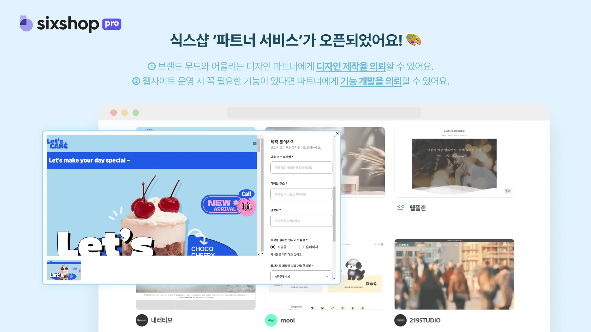 이제 원하는 디자인이나 기능 제작은 파트너에게 맡기고