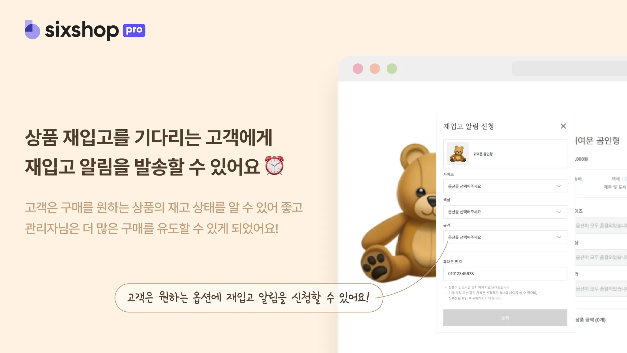 고객에게 빠르게 재입고 소식을 전해 보세요.