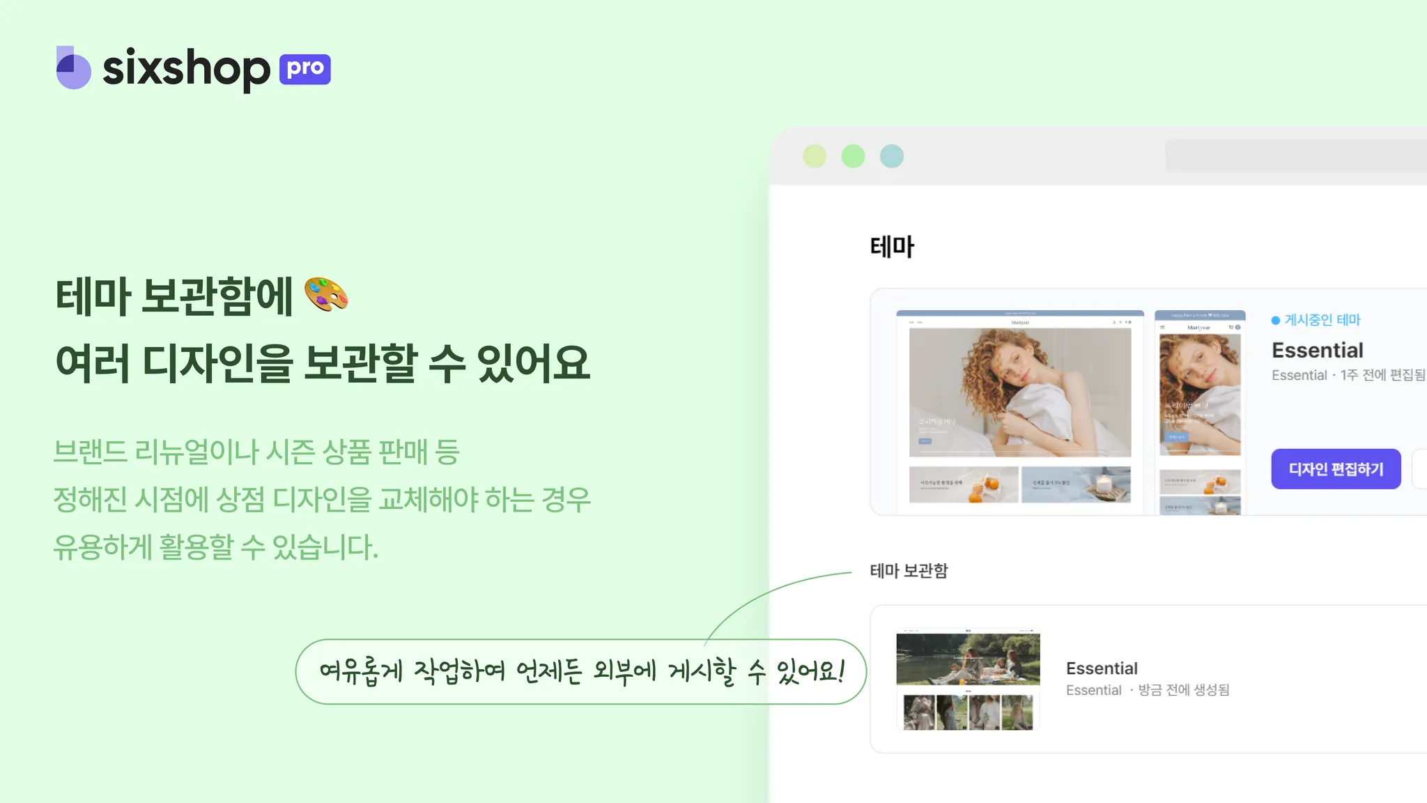 식스샵 프로에는 지속적으로 다양한 테마가 추가될 예정이기에 더욱 활용도가 높아질 기능이죠.