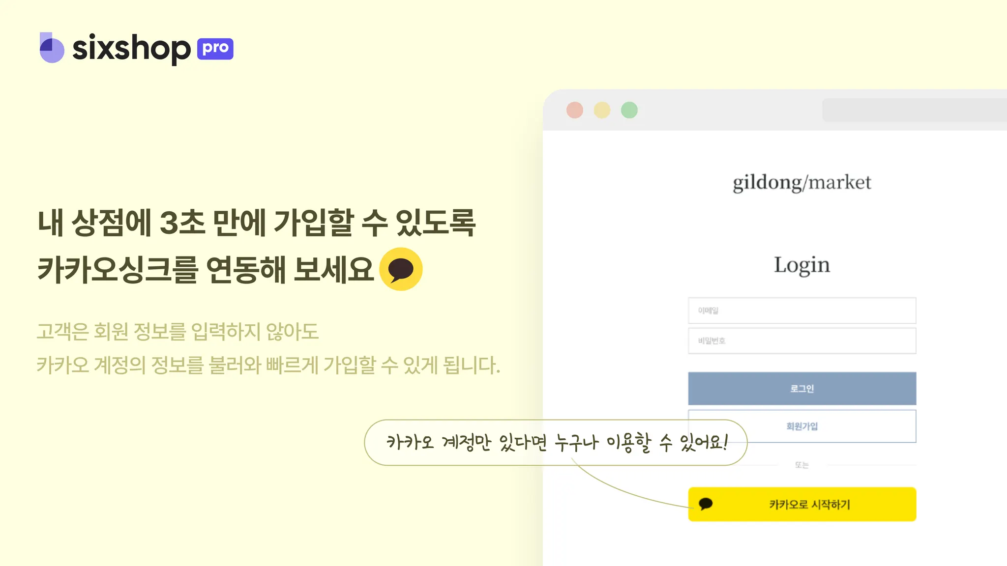 내 상점에서 카카오로 원클릭 가입 및 로그인이 가능해집니다.