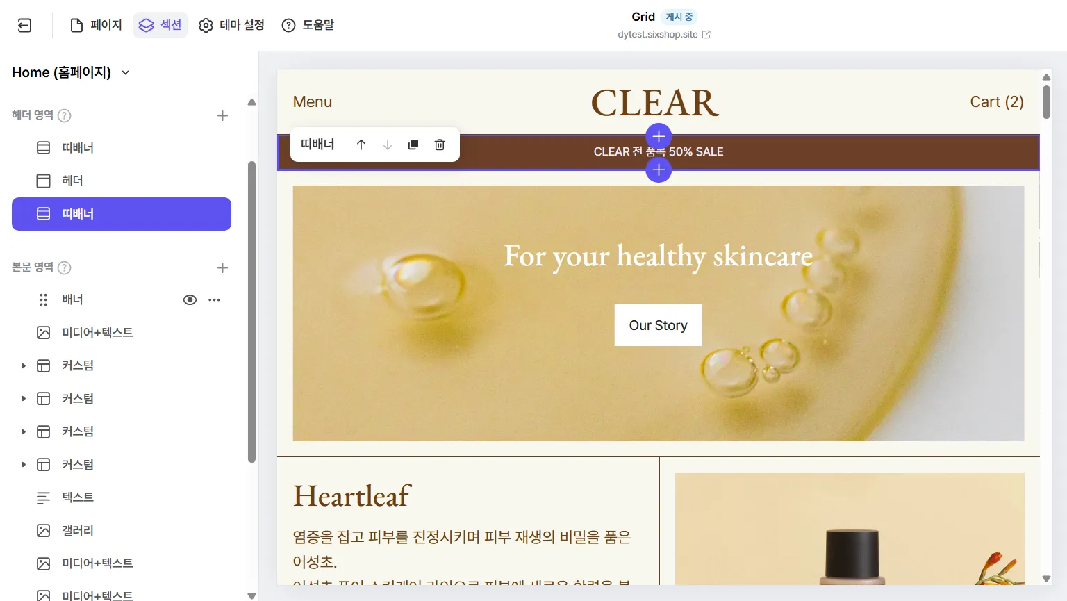 헤더와 푸터까지도 섹션을 자유롭게 추가