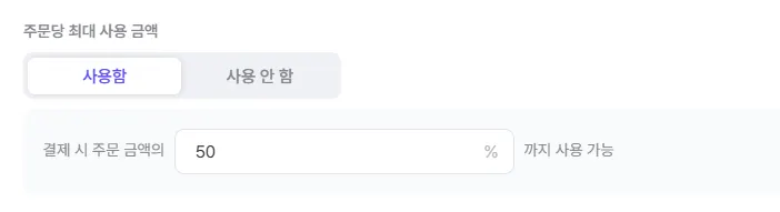 적립금 사용 조건으로 최소 적립금 보유 금액과 최소 주문금액을 설정할 수 있을 뿐 아니라,