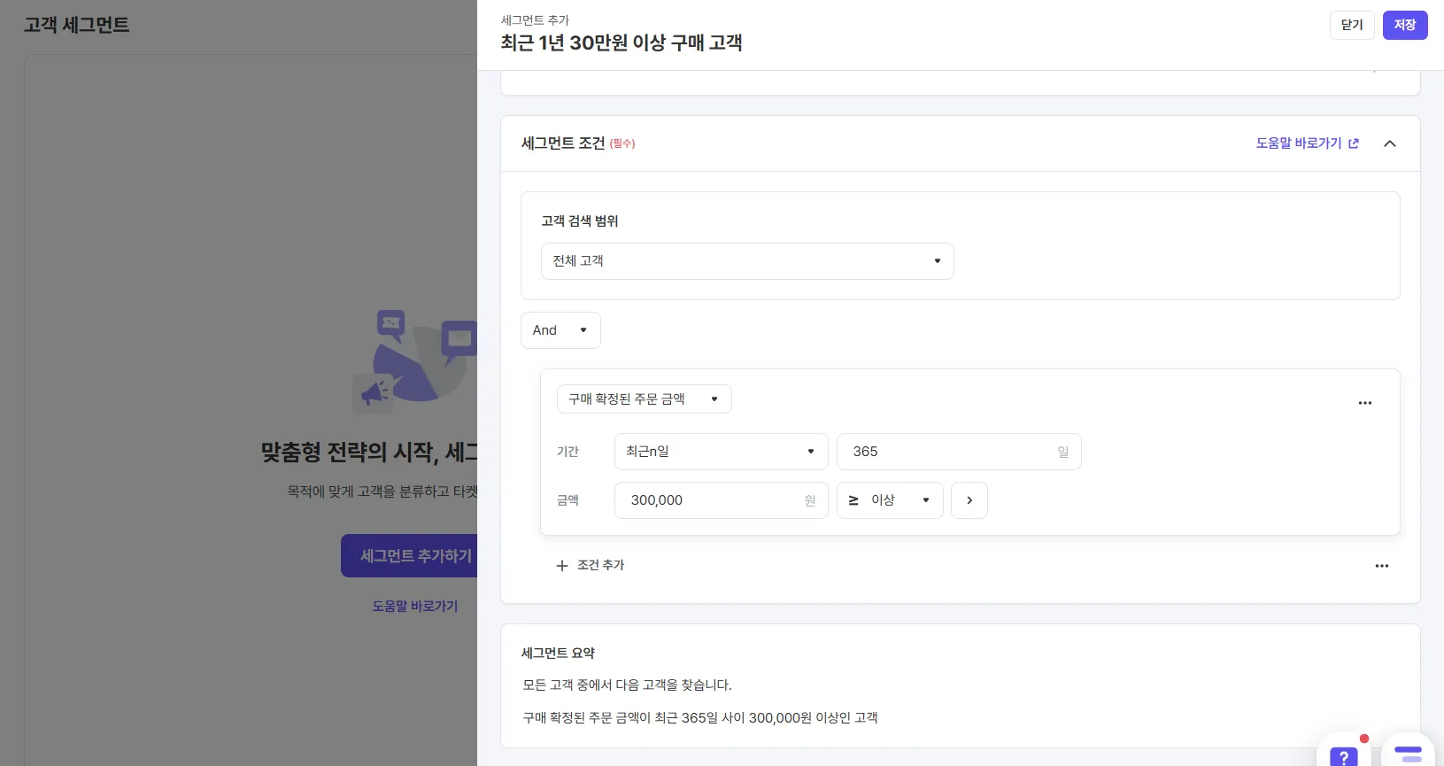는 특정 조건/행동을 만족한 고객 집단을 쏙쏙 추출하는 기능이에요.