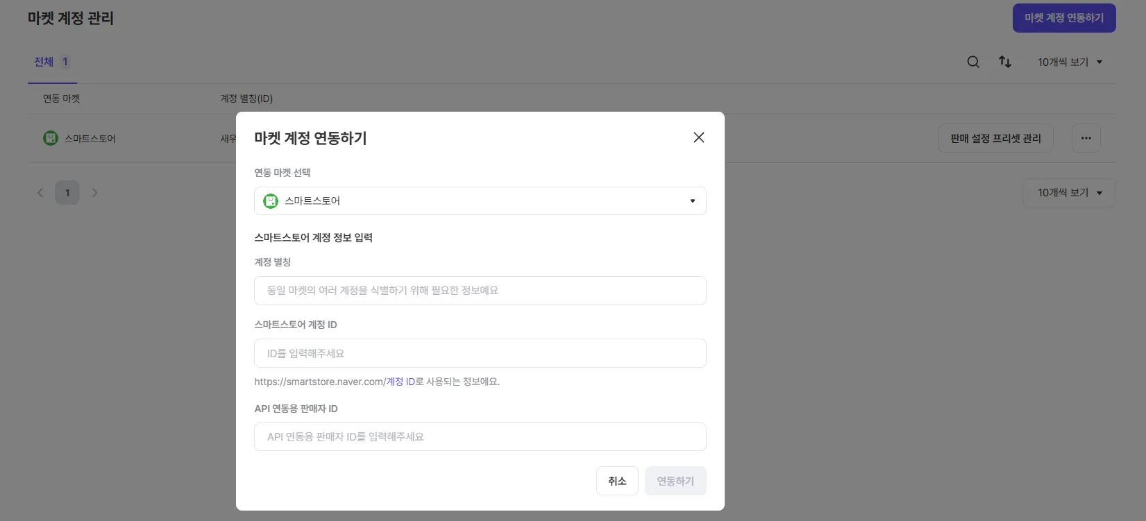 스마트스토어 계정 정보를 식스샵 프로에 연동하고,