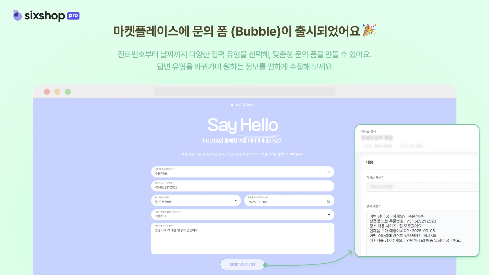 3. 마켓플레이스 - 문의 폼(Bubble) 제공