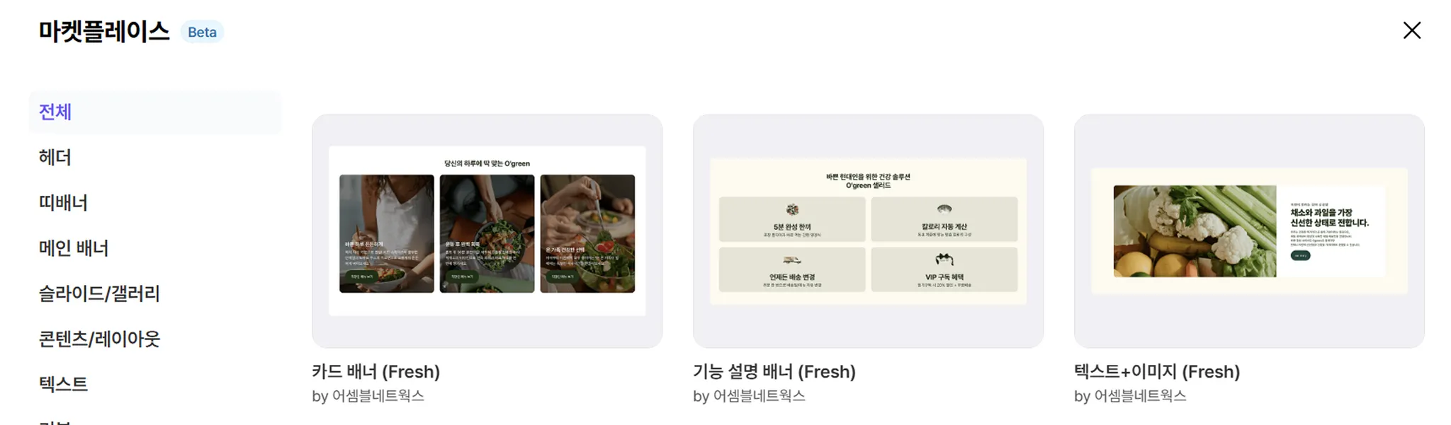 디자인 에디터 상단에 마켓플레이스 버튼이 생겨, 블록 다운로드가 한층 더 편리해졌어요.