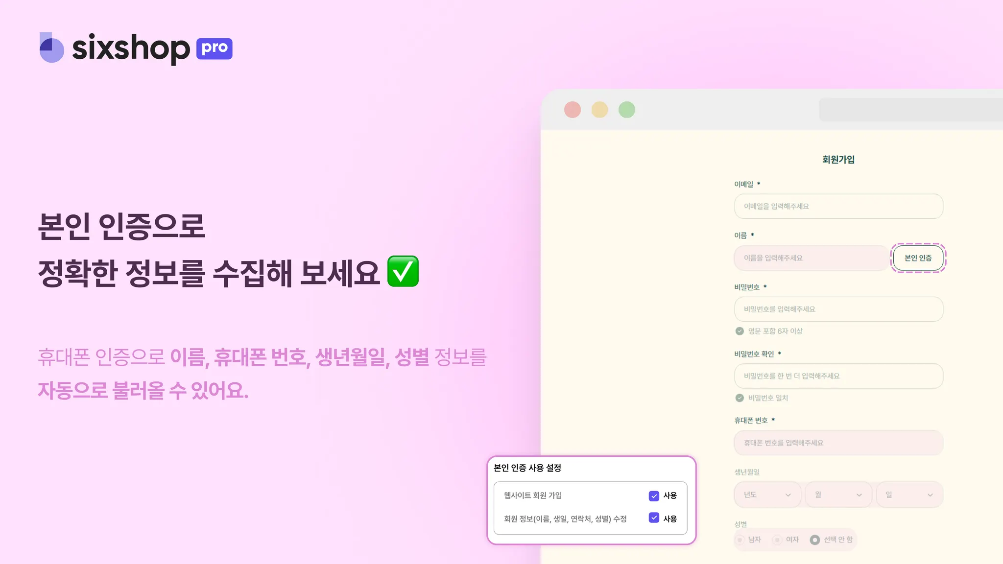 본인 인증으로 정확한 회원 정보를 수집해 보세요