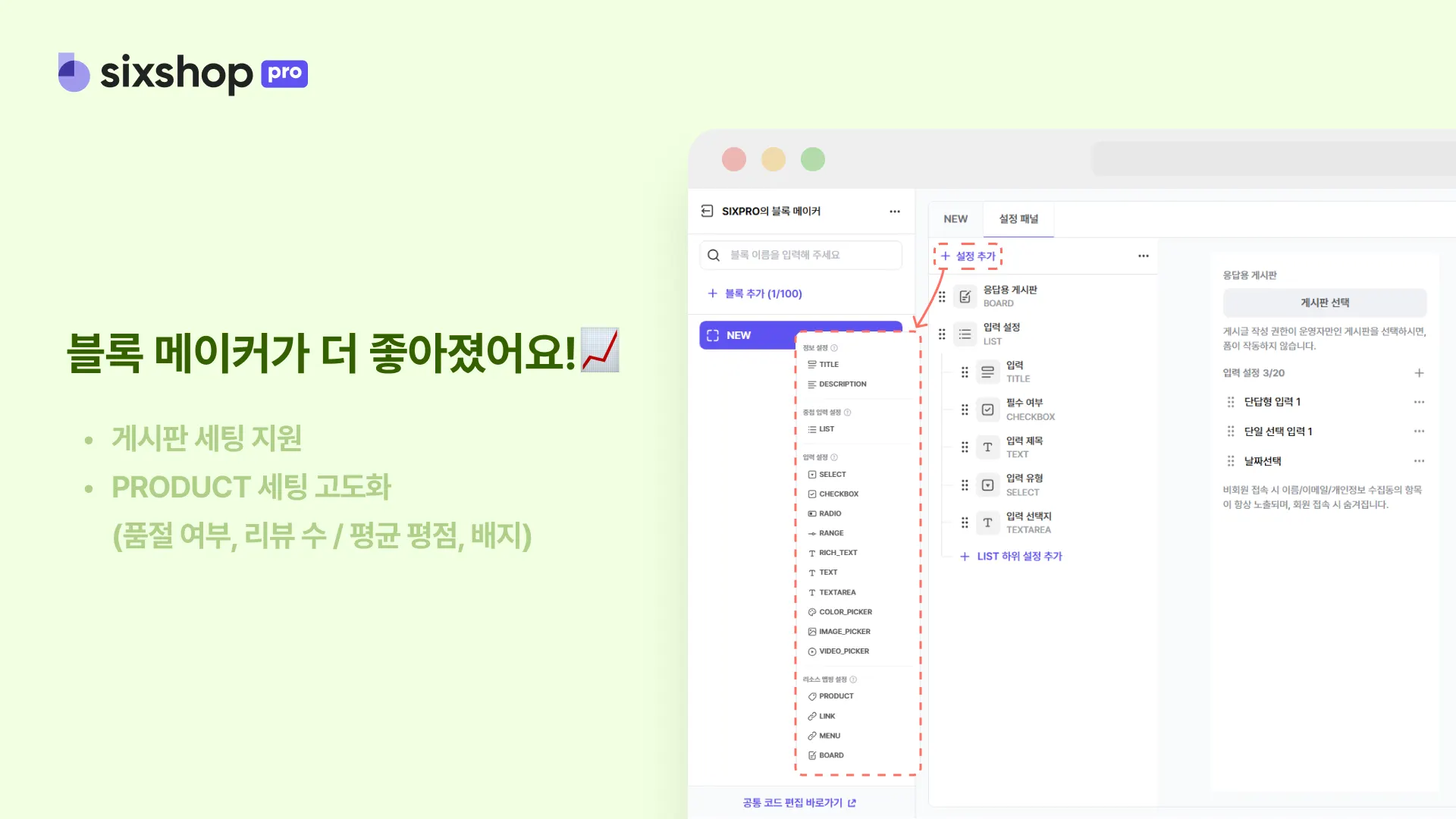 식스샵 프로에 새롭게 추가된 블록 리스트를 확인하여 원하는 블록을 웹사이트에 적용해 보세요!