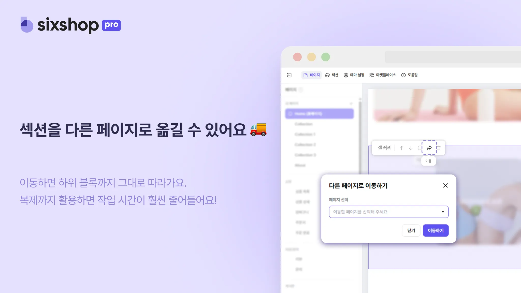 이제 섹션과 그 하위 블록 전체를 다른 페이지로 ‘이동’할 수 있게 되었답니다!
