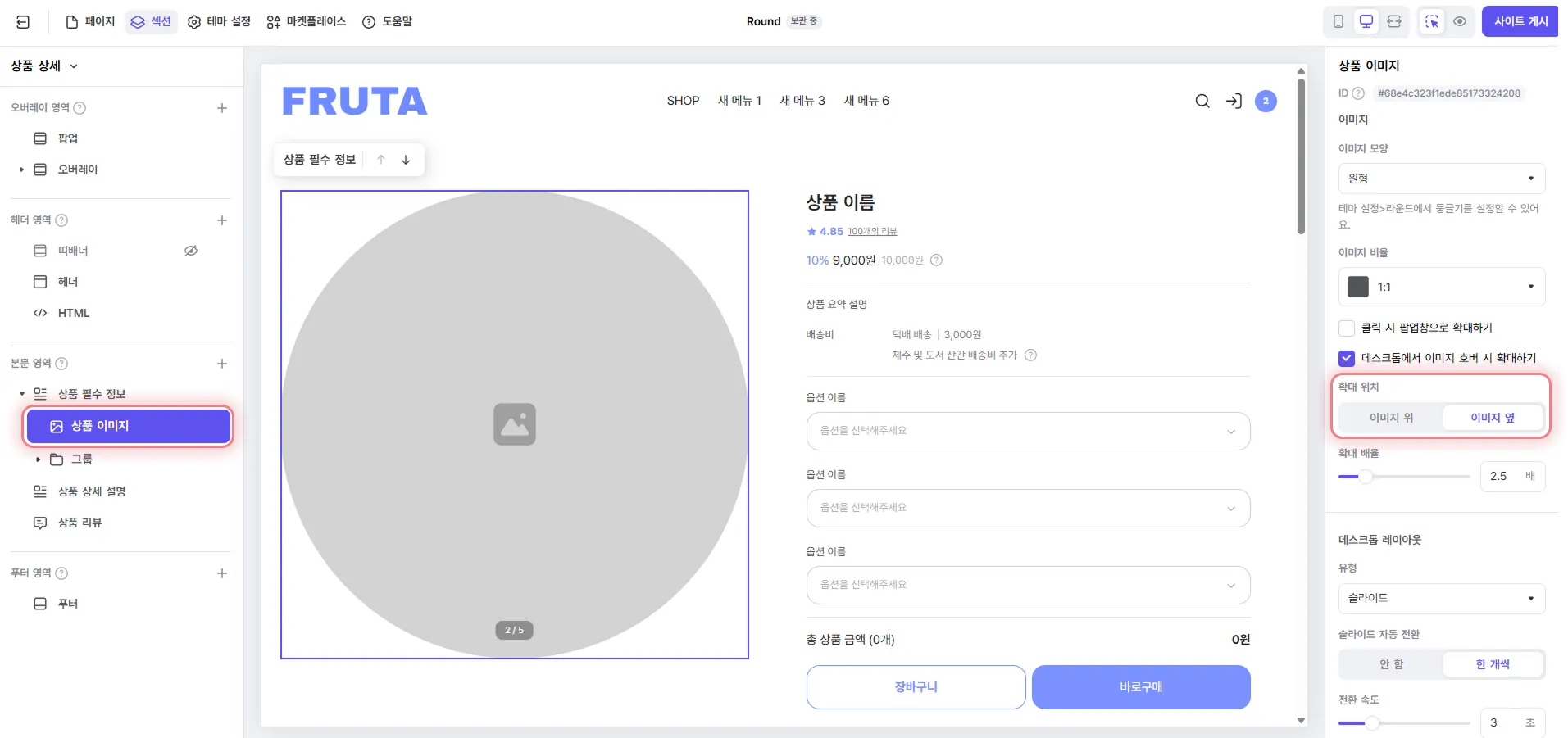 식스샵 프로에서는 상품 상세 페이지의 ‘이미지’ 설정도 개선되었어요.