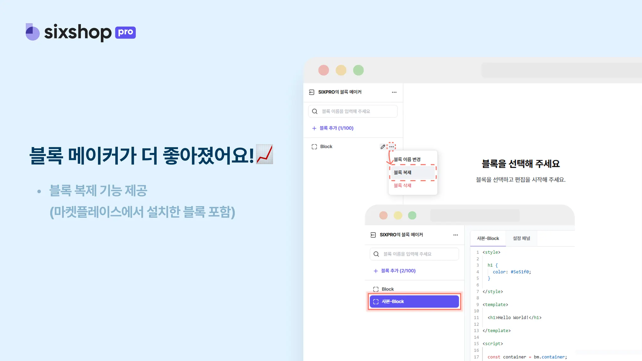 블록 메이커에 ‘복제’ 기능이 추가되었어요!