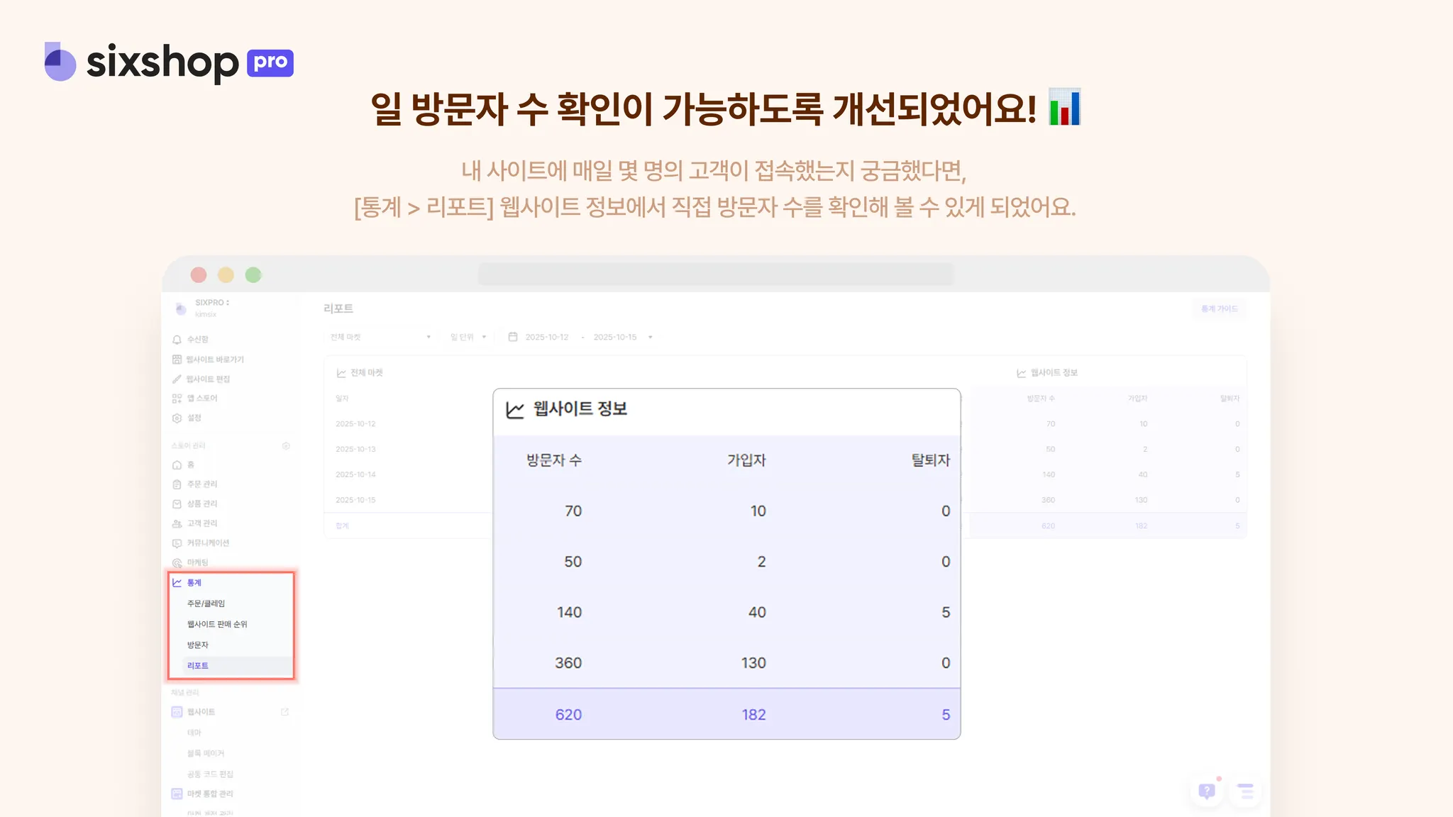 통계 리포트에 ‘방문자 수’ 항목이 새롭게 추가되었어요!