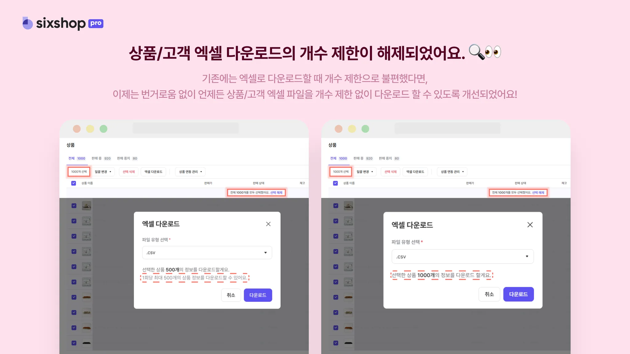 상품과 고객 메뉴의 엑셀 다운로드 기능이 개선되었어요!