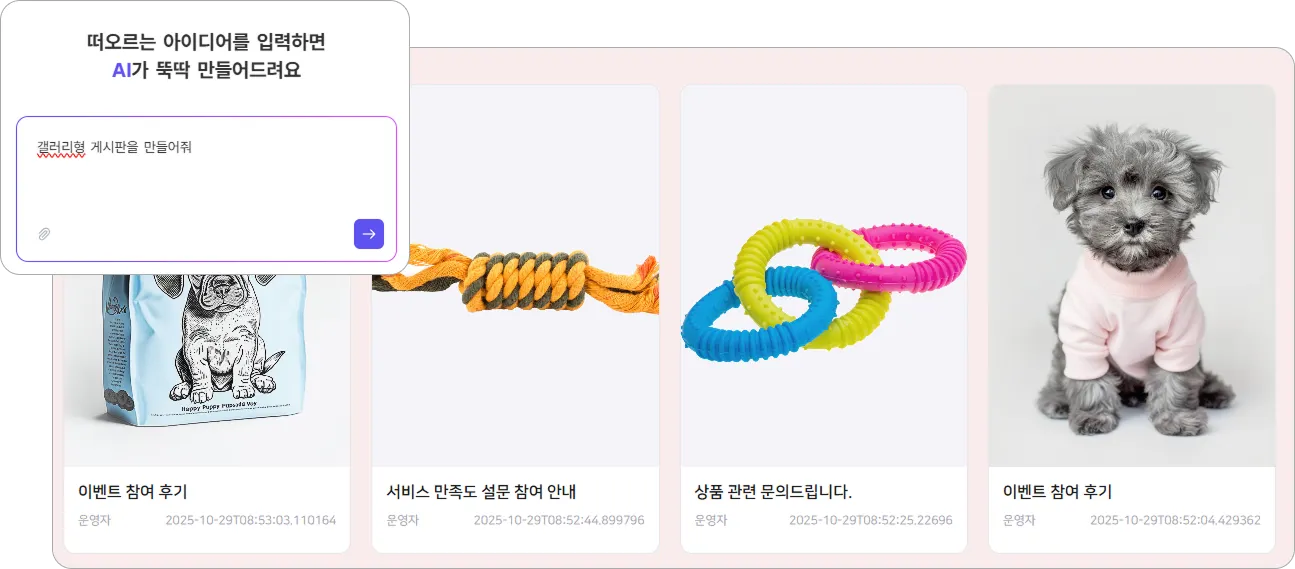 게시판에 저장된 정보를 활용한 다양한 게시판 목록 블록을 AI로 만들 수 있어요.