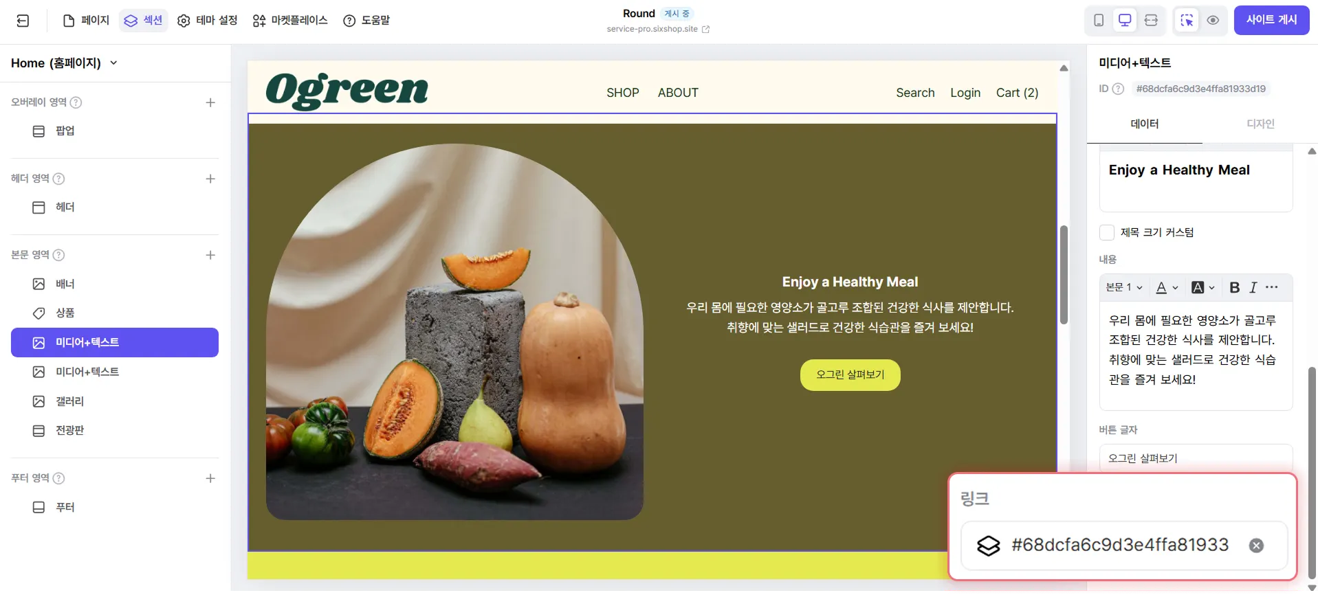 더 좋아진 식스샵 프로에서는 특정 섹션/블록으로 이동하는 링크 설정을 지원합니다!