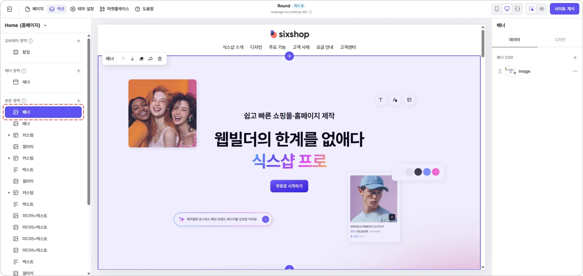 배너나 갤러리 섹션을 활용해, 페이지에 접속했을 때 브랜드의 분위기와 핵심 메시지가 한눈에 전해지도록 구성해 보세요. 짧은 문장과 임팩트 있는 비주얼이 방문자의 첫인상을 결정해요.