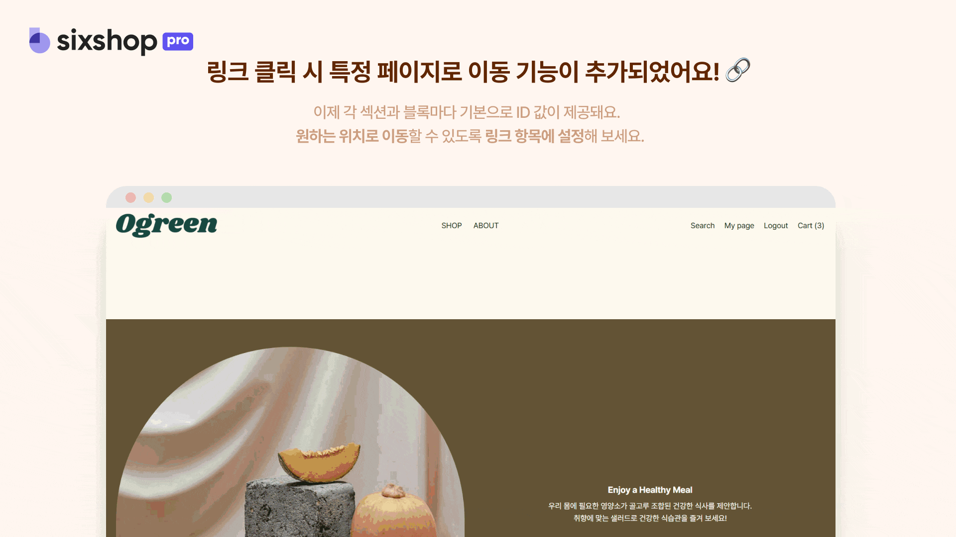 메뉴에 링크를 연결할 때 값만 입력하면, 섹션 또는 블록의 위치로 바로 이동이 가능해 고객이 특정 위치에서