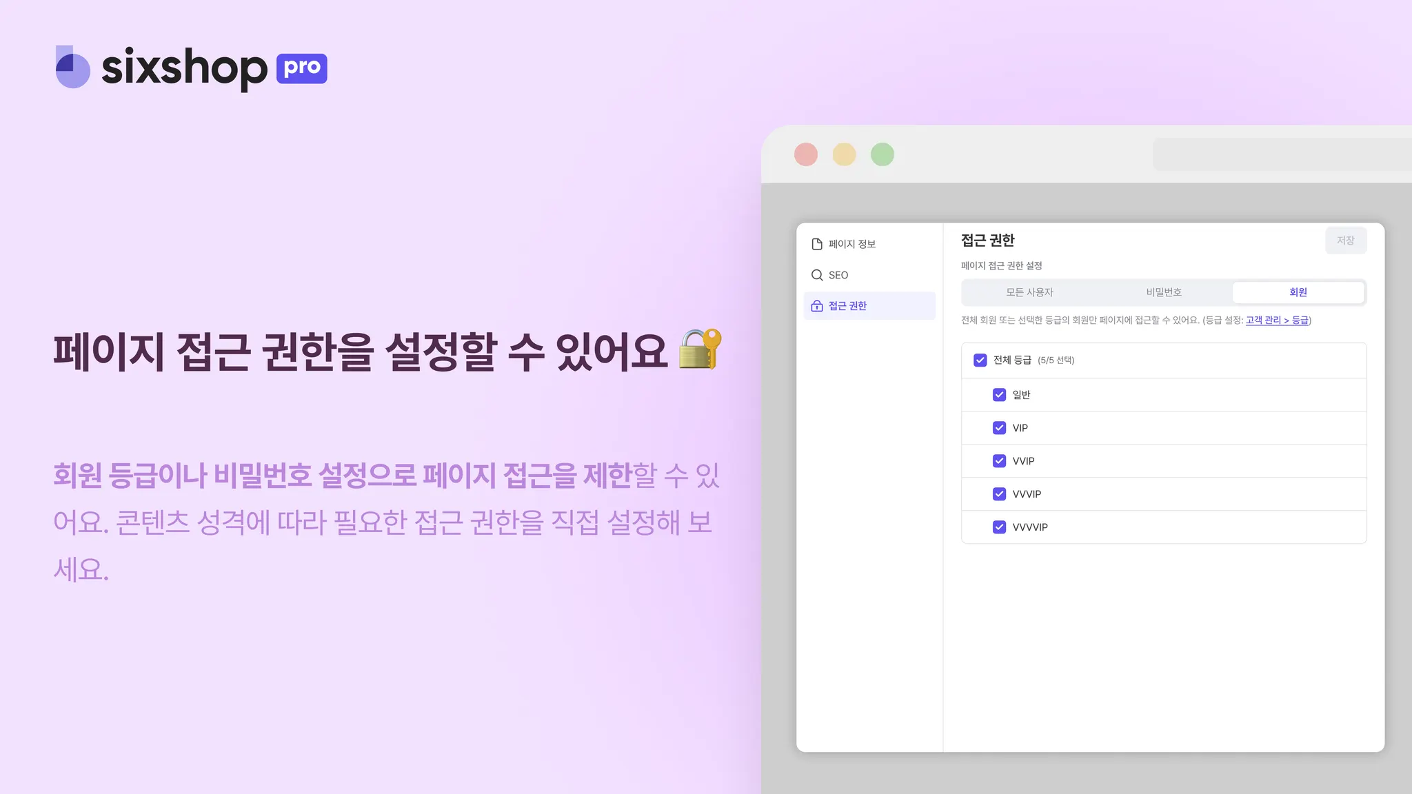 해당하지 않는 등급이 페이지에 접근하면 “특정 회원만 볼 수 있다”라는 안내가 노출되어요.