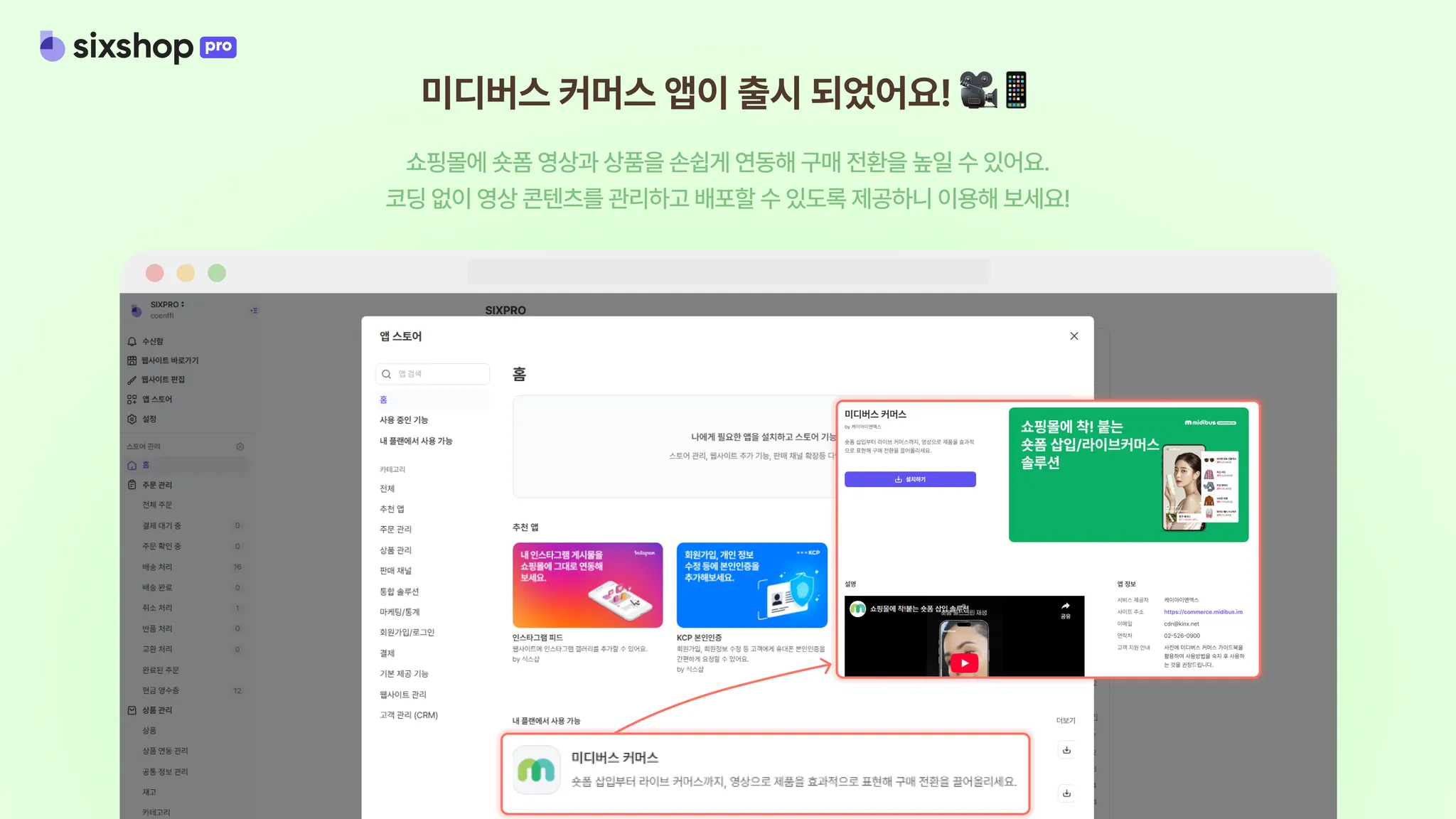 쇼핑몰에 방문자 체류 시간과 재방문율을 높일 수 있는 영상 커머스 솔루션을 노출할 수 있도록 앱이 출시되었어요!