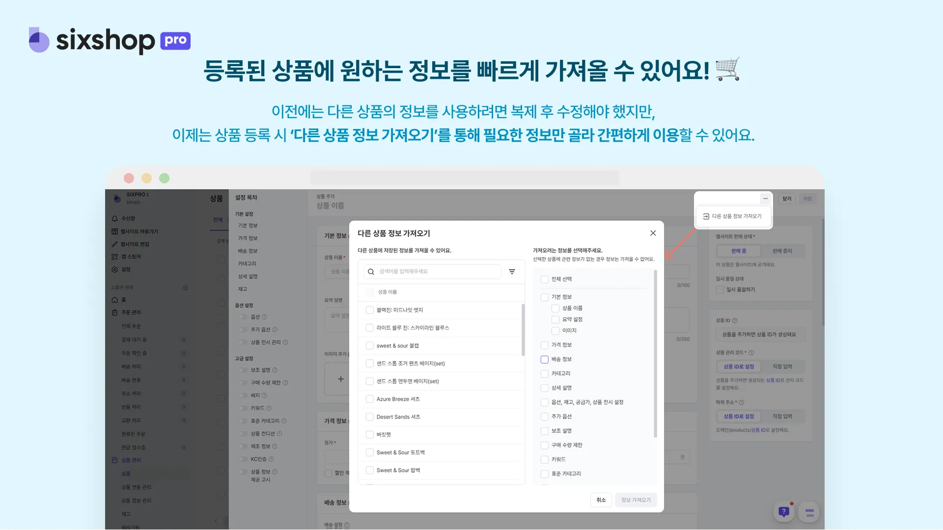 이제는 상품 등록 시 다른 상품에 저장된 특정 정보를 다른 상품 정보 가져오기 기능을 통해