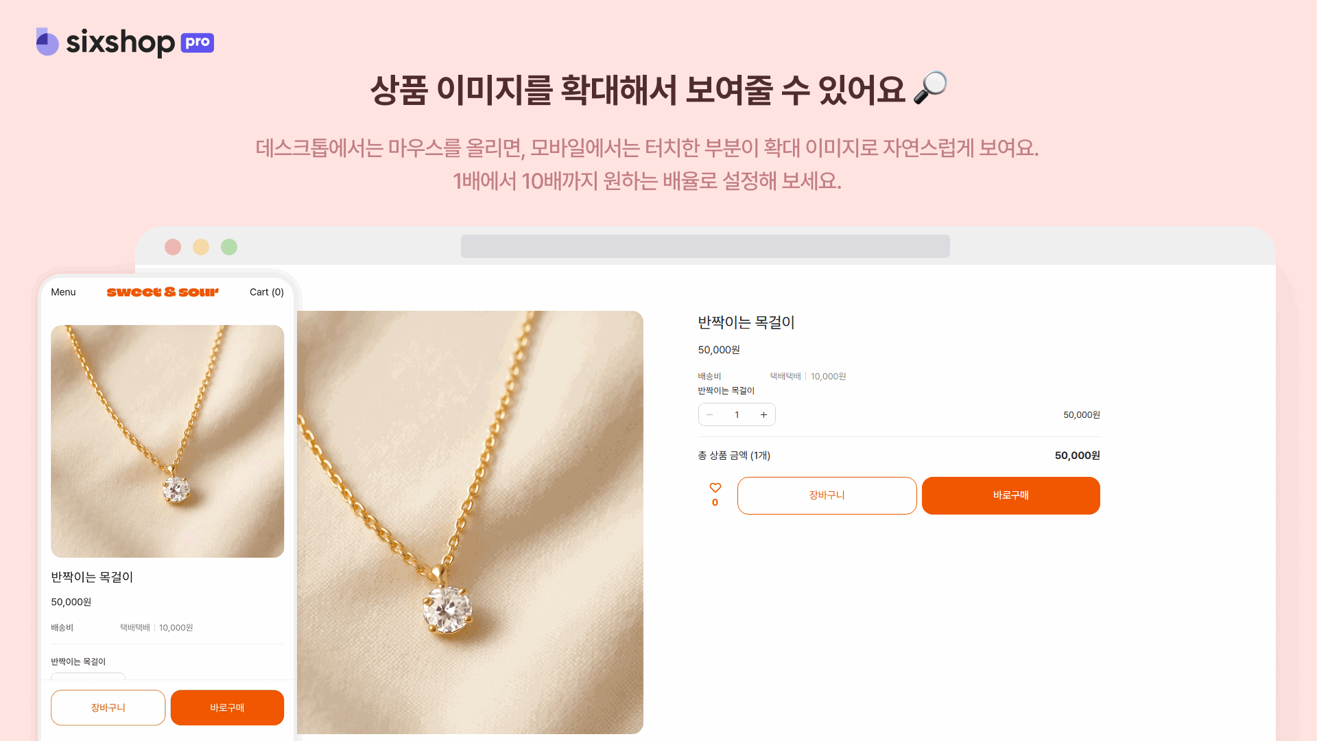 상품 이미지에 마우스를 올리면 바로 확대돼요