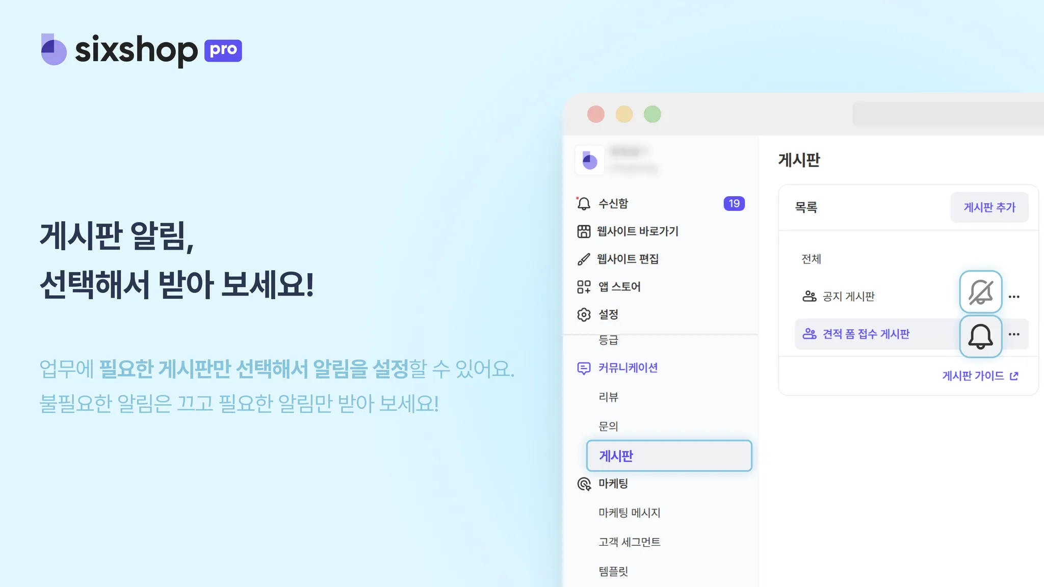알림이 필요하지 않은 게시판의 알림 설정을 꺼 불필요한 알림은 줄여 보세요.