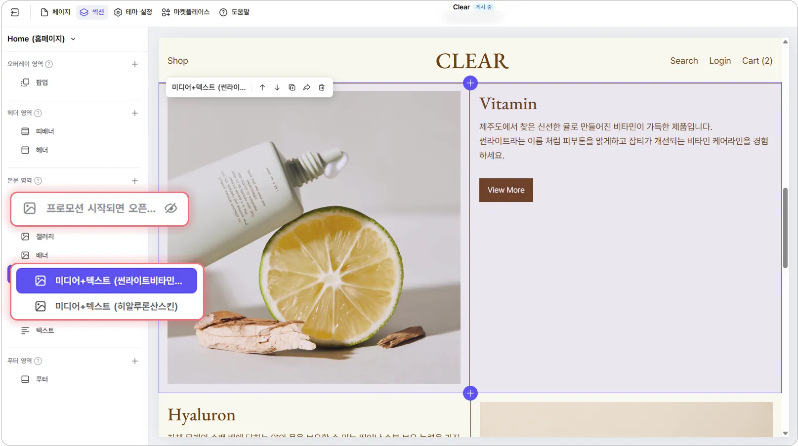 프로모션, 이벤트 등 특정 시점에 공개되어야 하는 콘텐츠라면, 섹션/블록 숨김 기능과 함께 활용해 보세요!