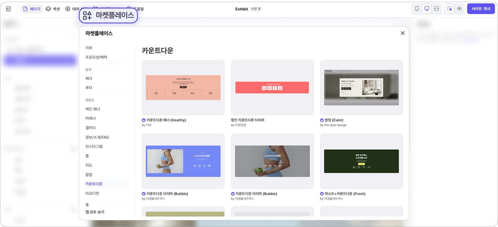 마켓플레이스의 디자인 블록을 활용하는 방법입니다.