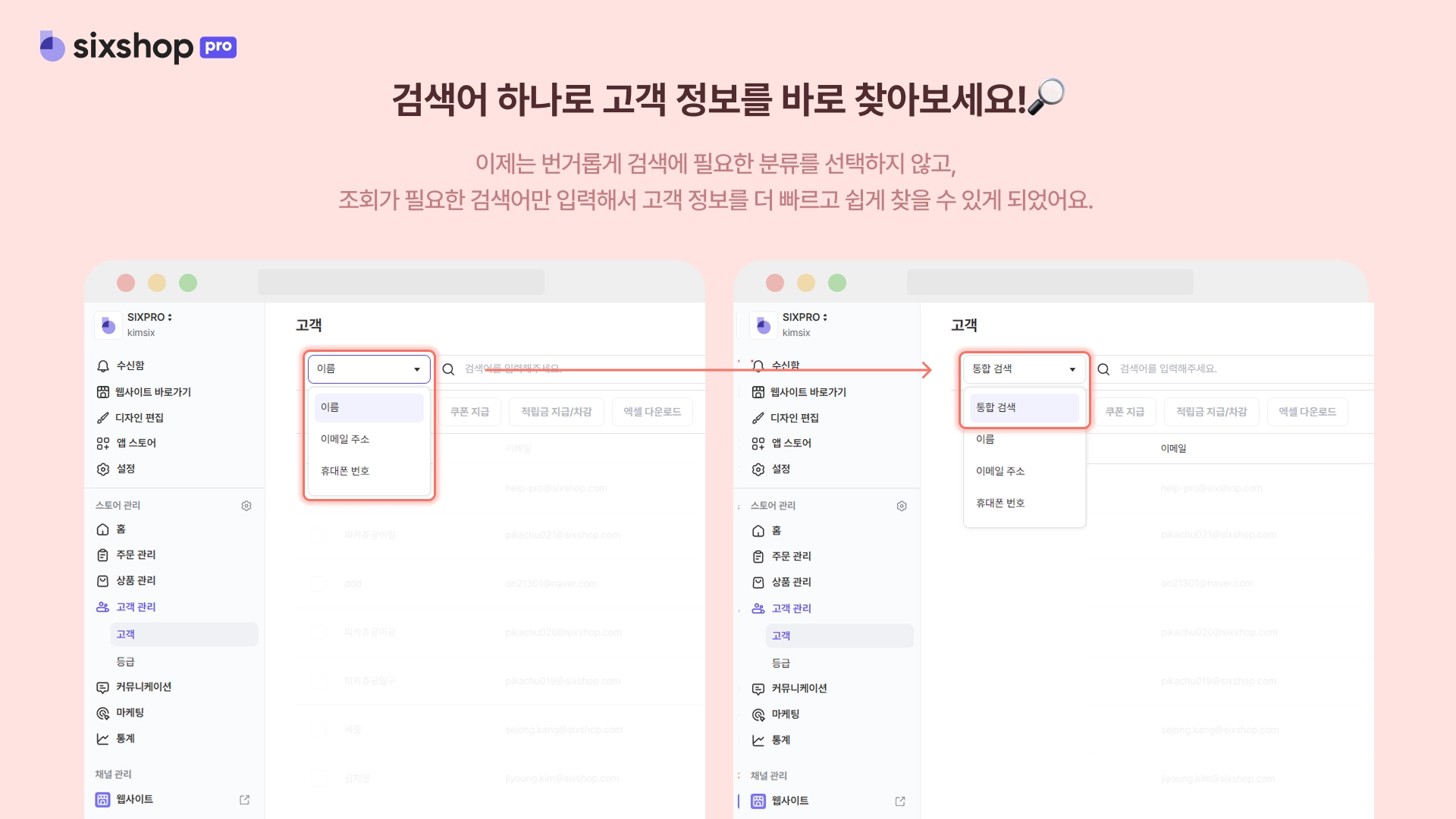 한층 편리해진 통합 검색으로 고객 정보를 더욱 빠르게 찾아 보세요!