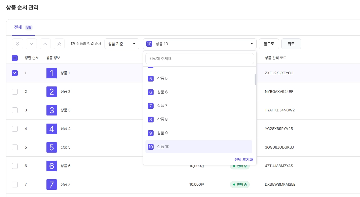 특정 상품 기준으로의 순서 변경이 가능