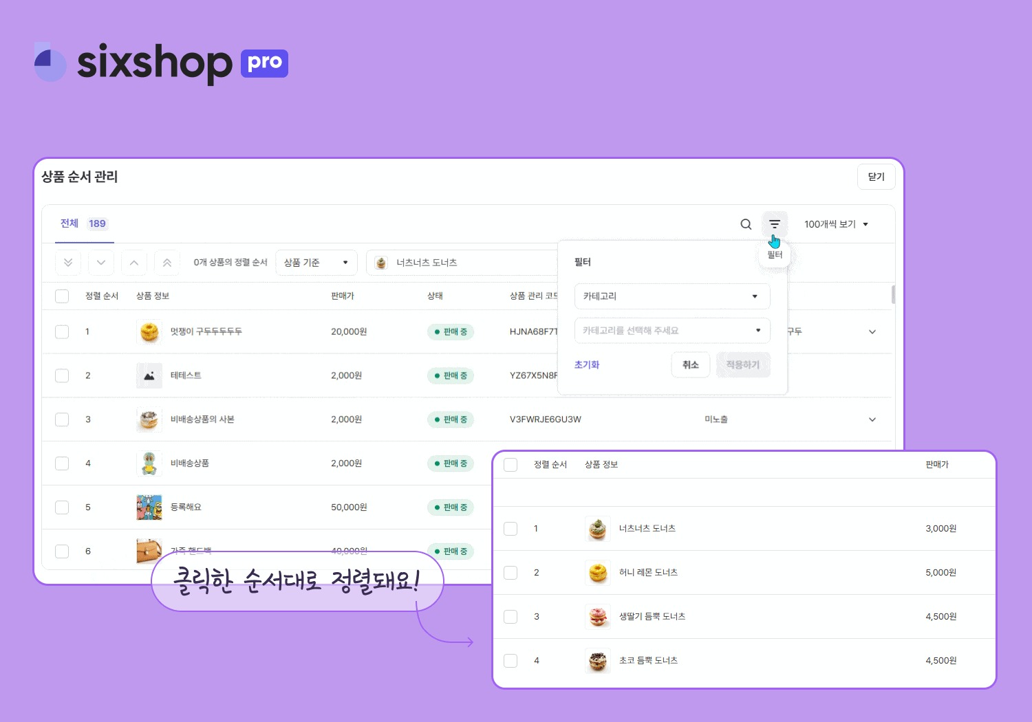 검색 기능도 지원해 순서를 바꾸고 싶은 상품을 빠르게 찾아 정렬할 수 있죠