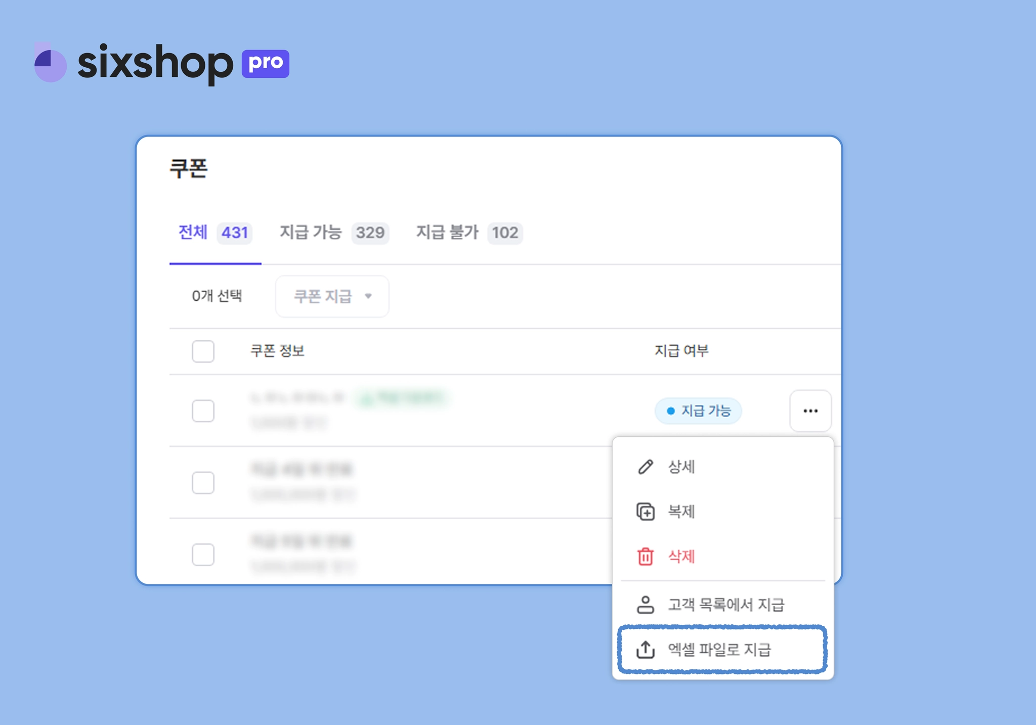 이제 쿠폰도 엑셀로 한 번에, 원하는 고객에게 정확하게 지급할 수 있어요