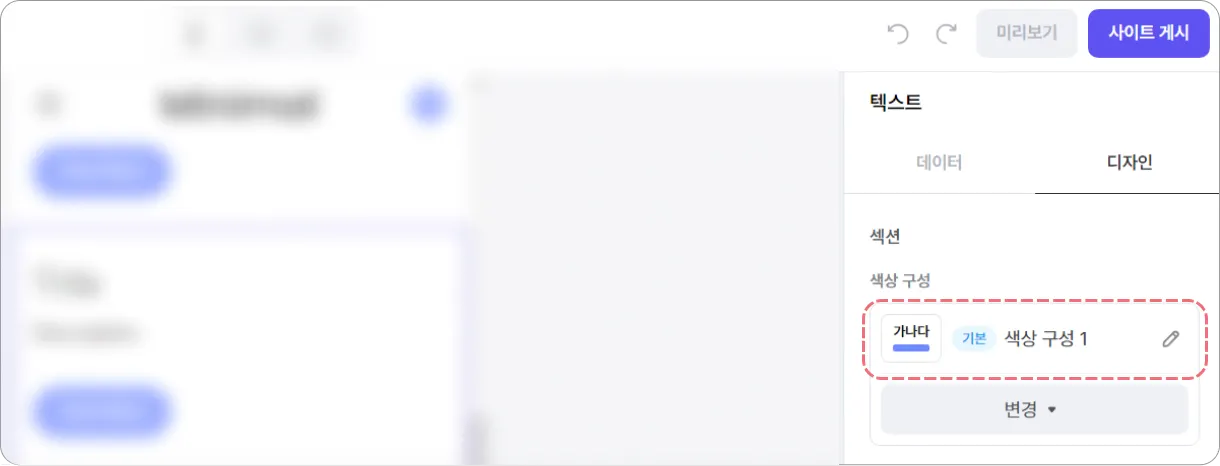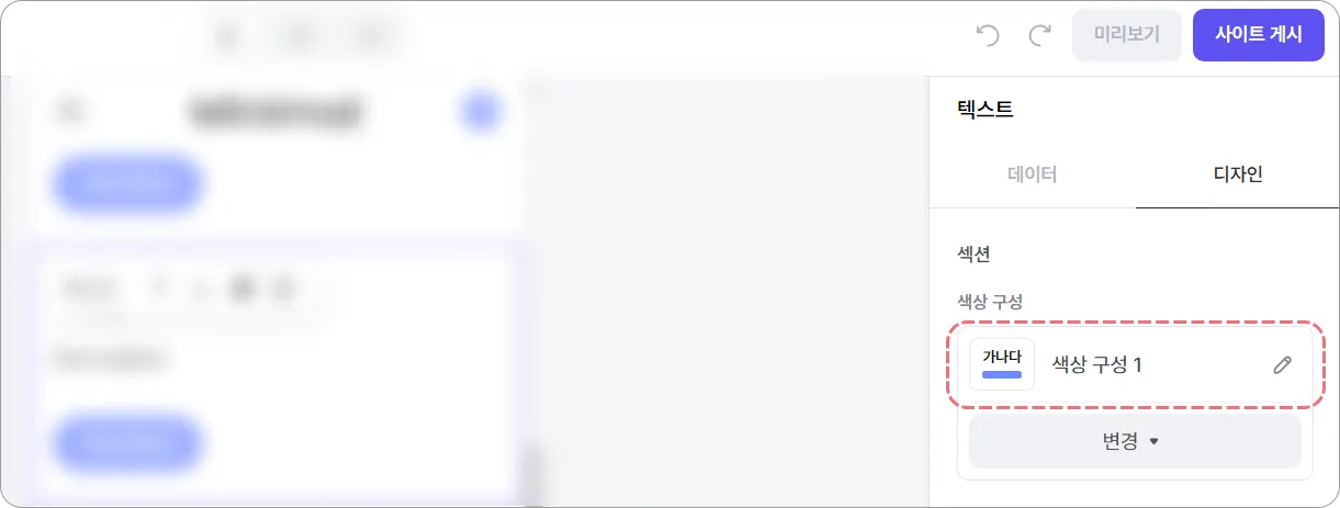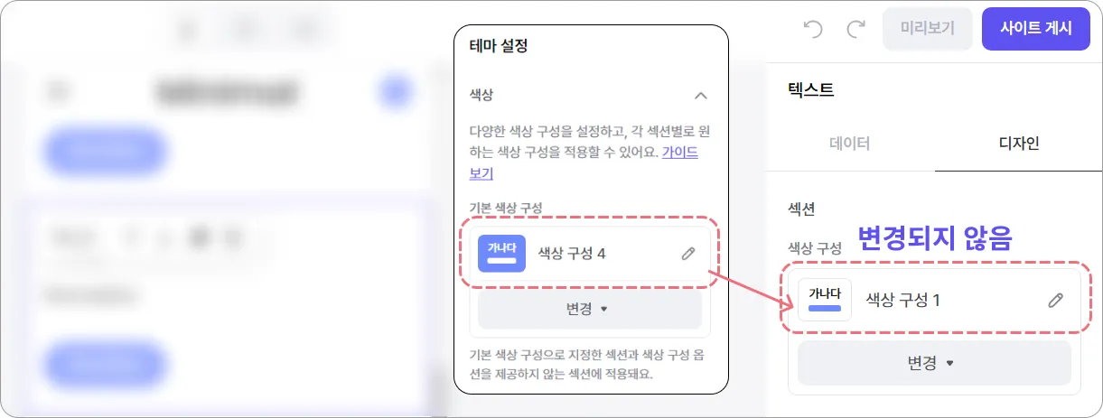 색상 구성을 개별 이용 중인 섹션이라면, 이후 테마 설정에서 기본 색상 구성을 변경해도 기존 색상 값이 유지됩니다.