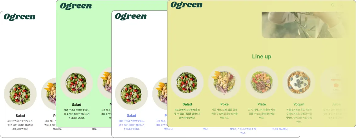TIP! 일부 영역에 활용되는 구성인 만큼, 내 브랜드의 대표 색상과 눈에 띄는 특별한 색상을 적절히 조합하시길 권장합니다.