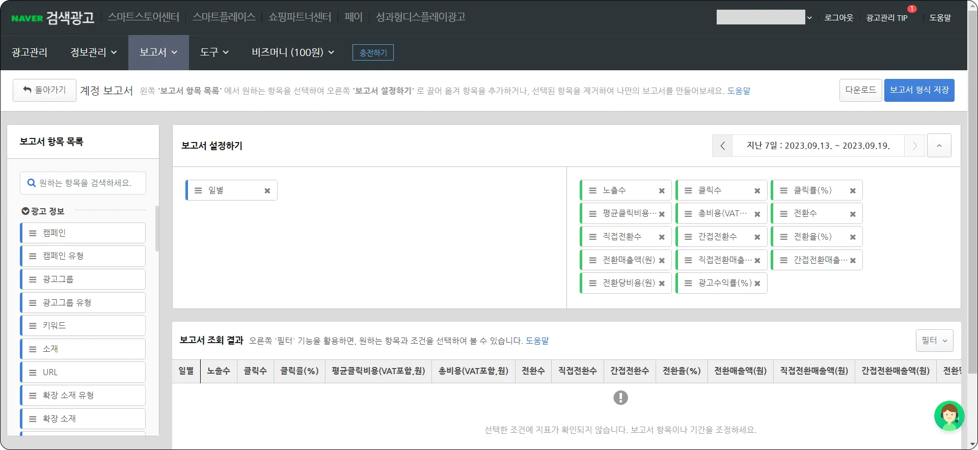 프리미엄 로그 분석 신청일 후 7영업일 이내 검수가 완료되면, [네이버 검색 광고 > 보고서 > 다차원 보고서]에서 + 새 보고서를 클릭하여 분석 리포트를 확인할 수 있어요.