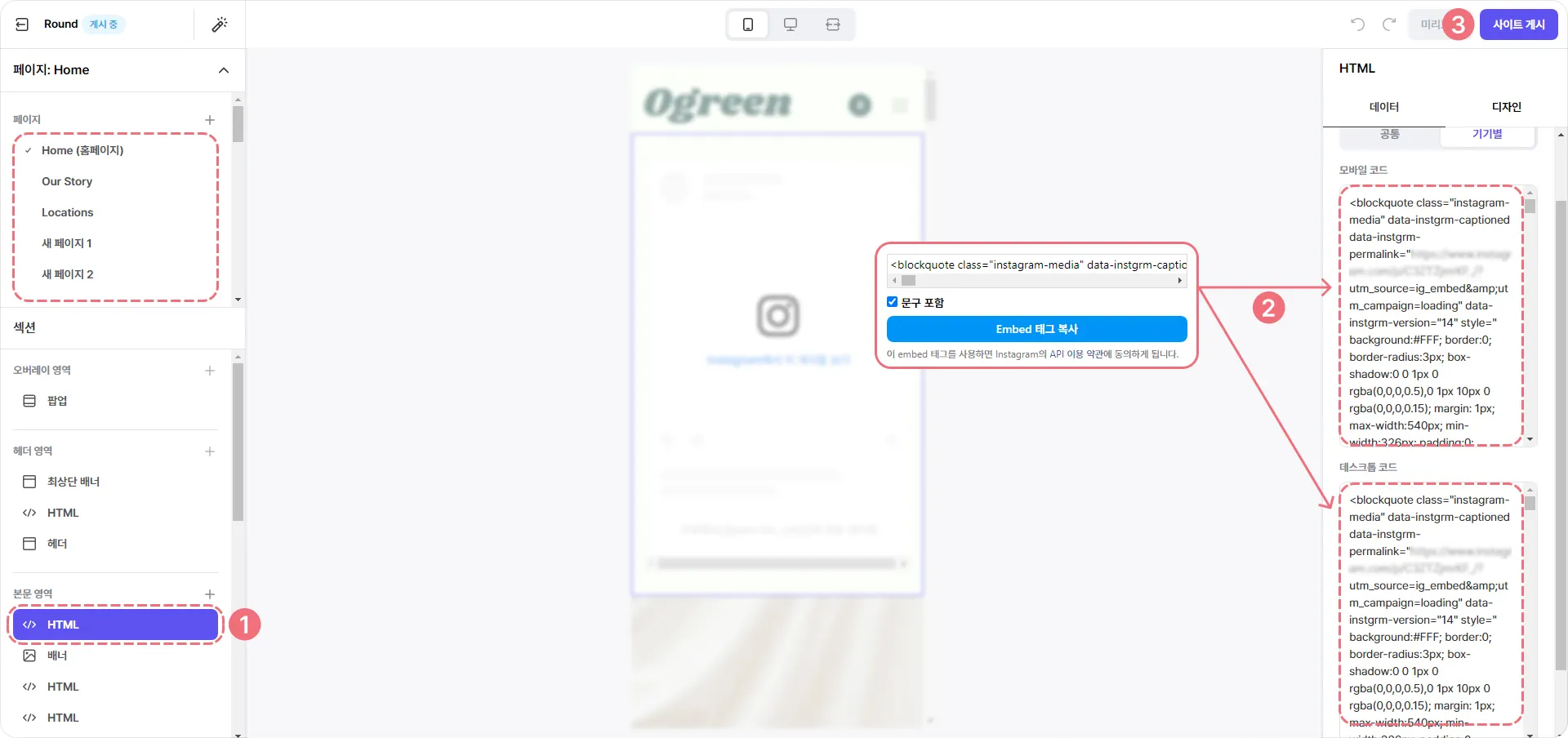 인스타그램에서 제공하는 임베드 코드를 활용하여 웹사이트에 피드를 공유할 수 있습니다.