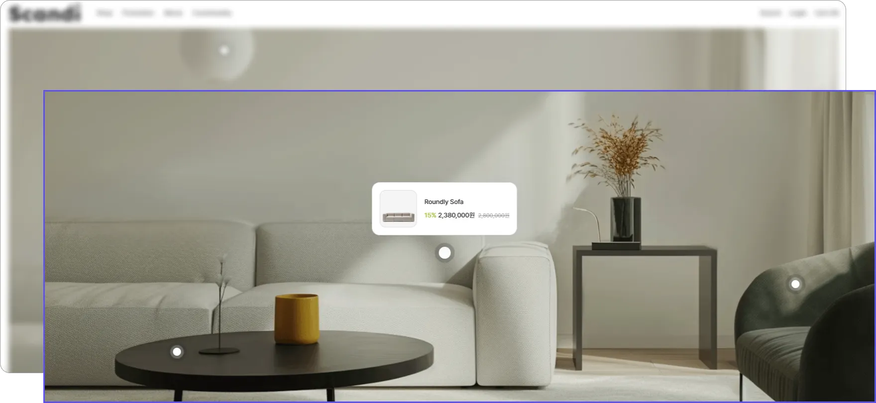 식스샵 프로에 등록한 상품 정보를 이미지에 태깅하여 전시하는 섹션입니다.