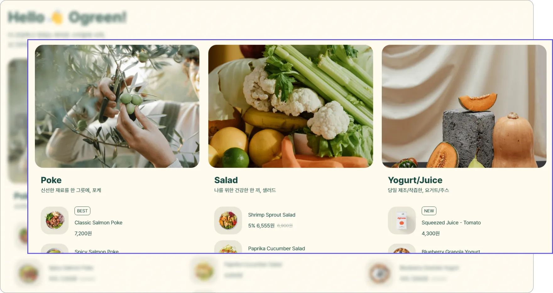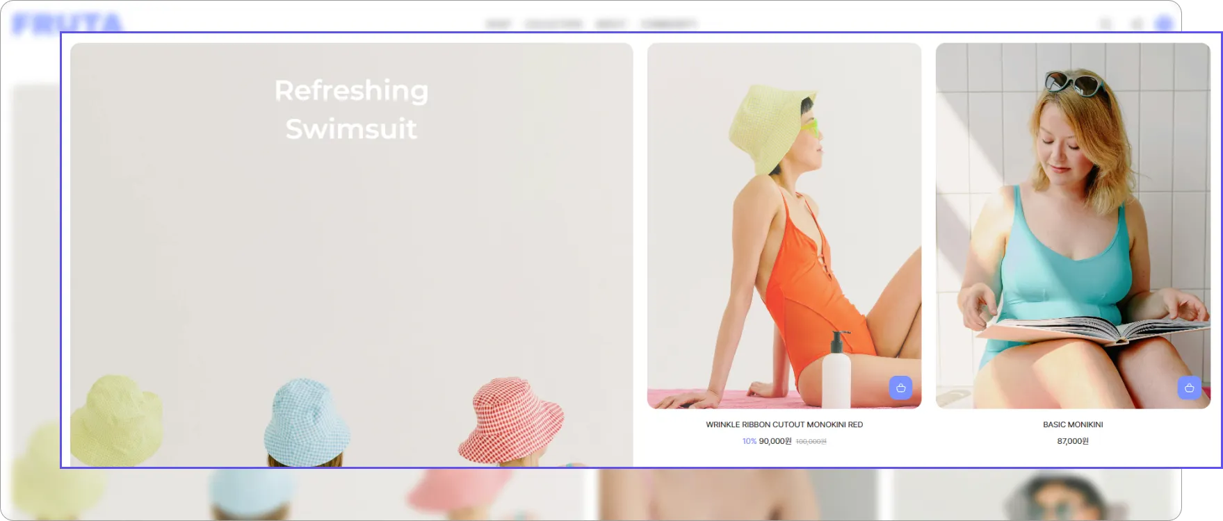 상품과 관련된 디자인 ‘섹션’을 활용하여 상품을 노출하는 방식입니다.