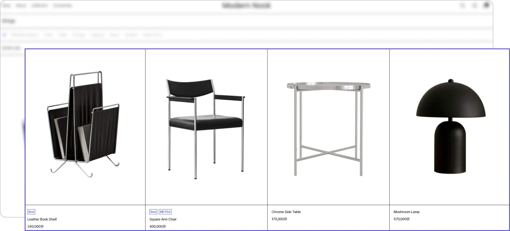 TIP! 헤더 영역과 푸터 영역에 상품을 노출하면 모든 페이지에 상품이 보이게 돼요.