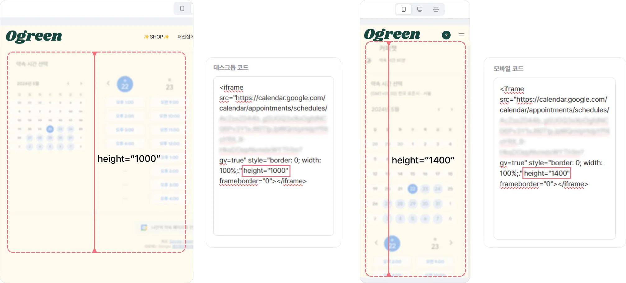 예약 일정에 따라 사이즈가 다를 수 있어, 예시를 참고하여 내 예약 일정에 맞는 높이를 설정해 보세요.