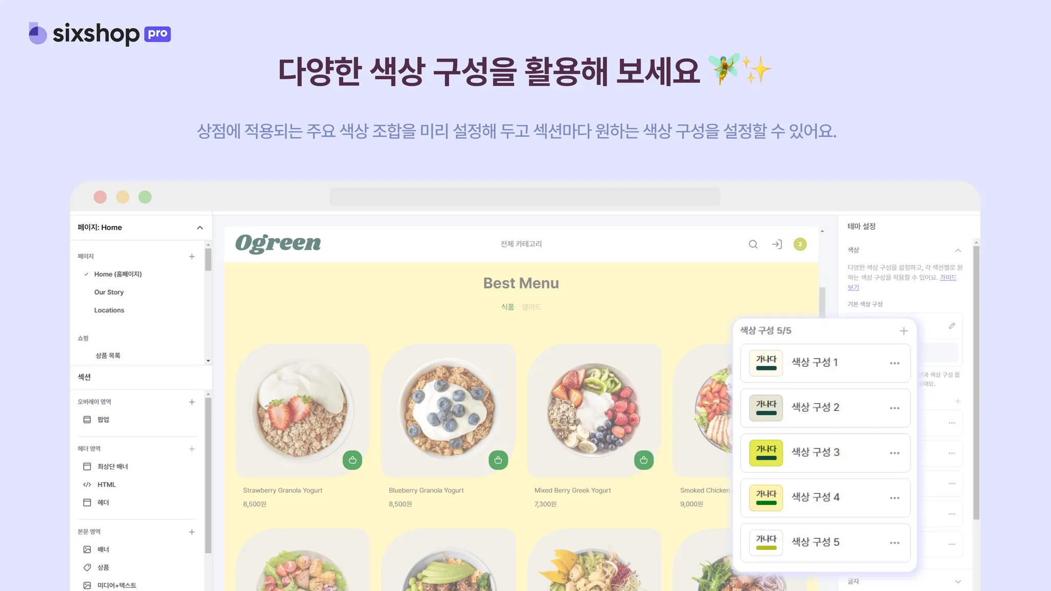 섹션마다 다른 색상 구성을 설정할 수 있어서 디자인 자유도가 한층 더 높아졌답니다!