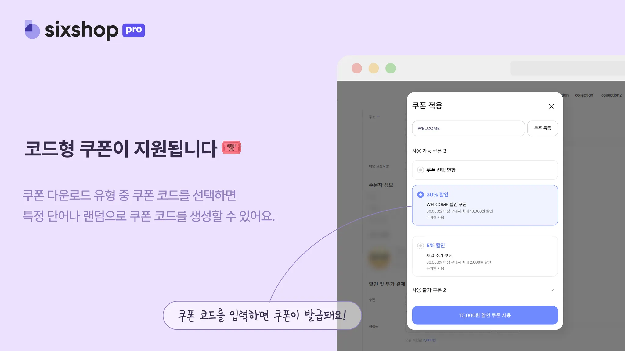 쿠폰 다운로드 설정 중 쿠폰 코드 유형이 추가되었어요!