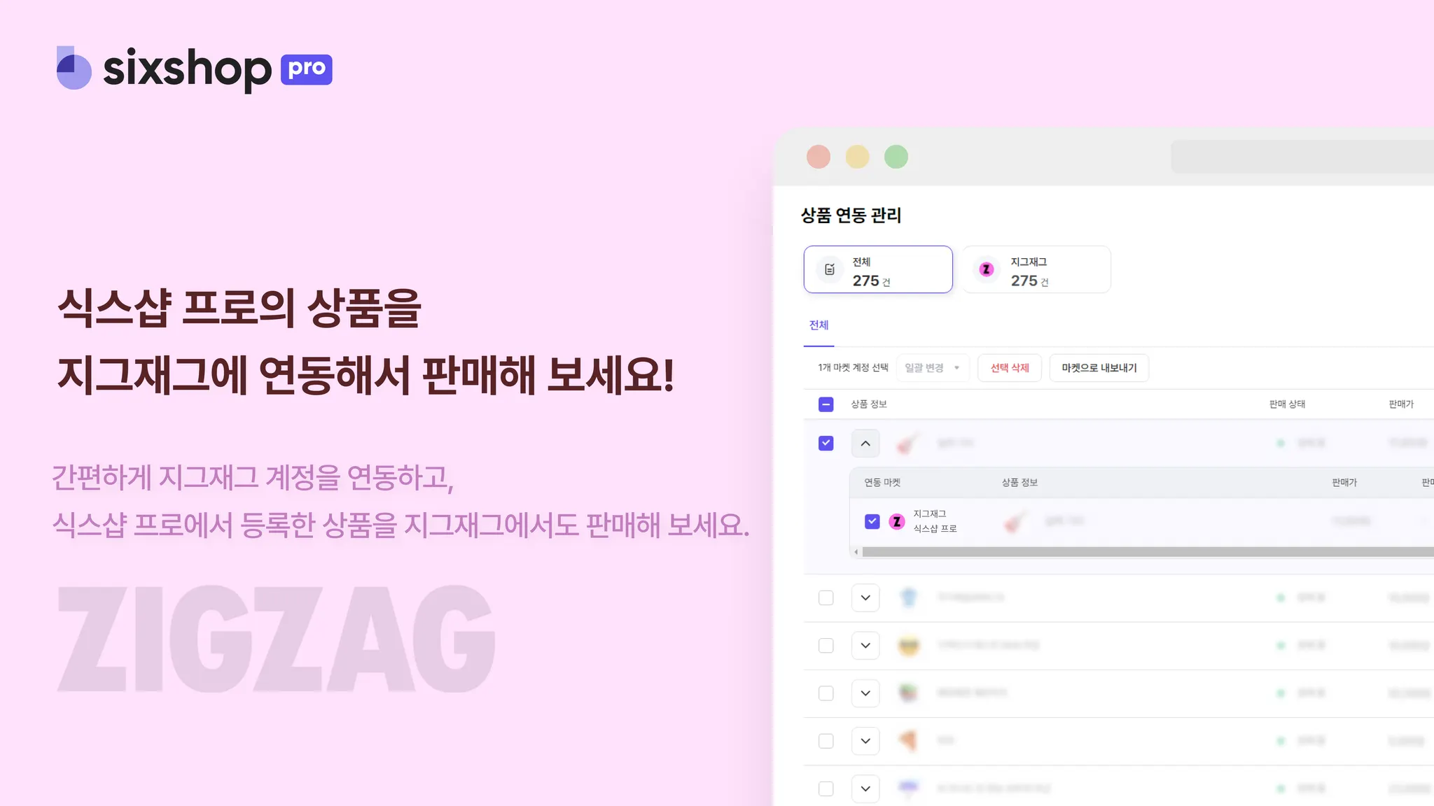 식스샵 프로에서 지그재그 상품을 등록하고, 주문까지 모두 한 번에 관리해 보세요.