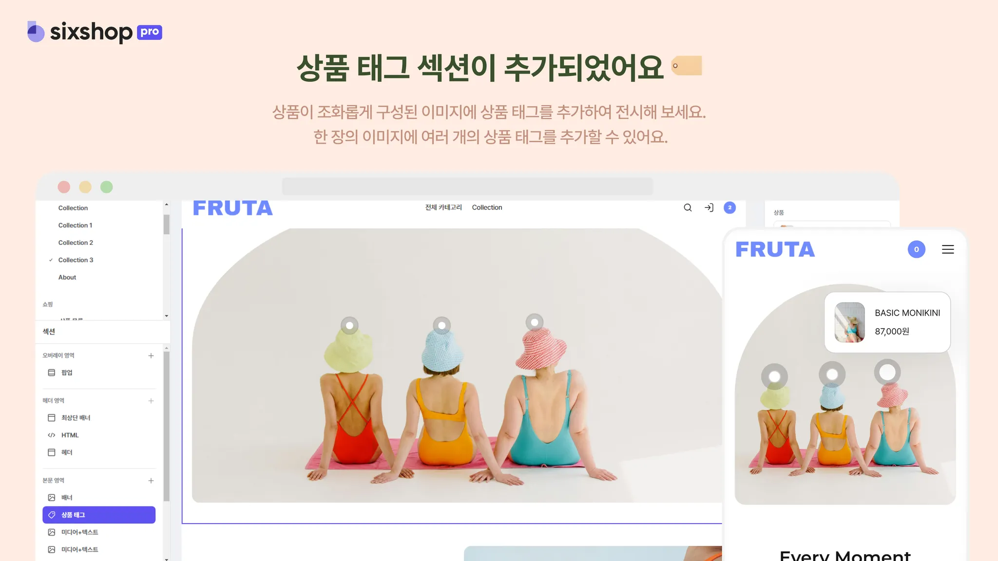 상품 태그 섹션은 식스샵 프로에서만 제공하는 유니크한 기능이에요.