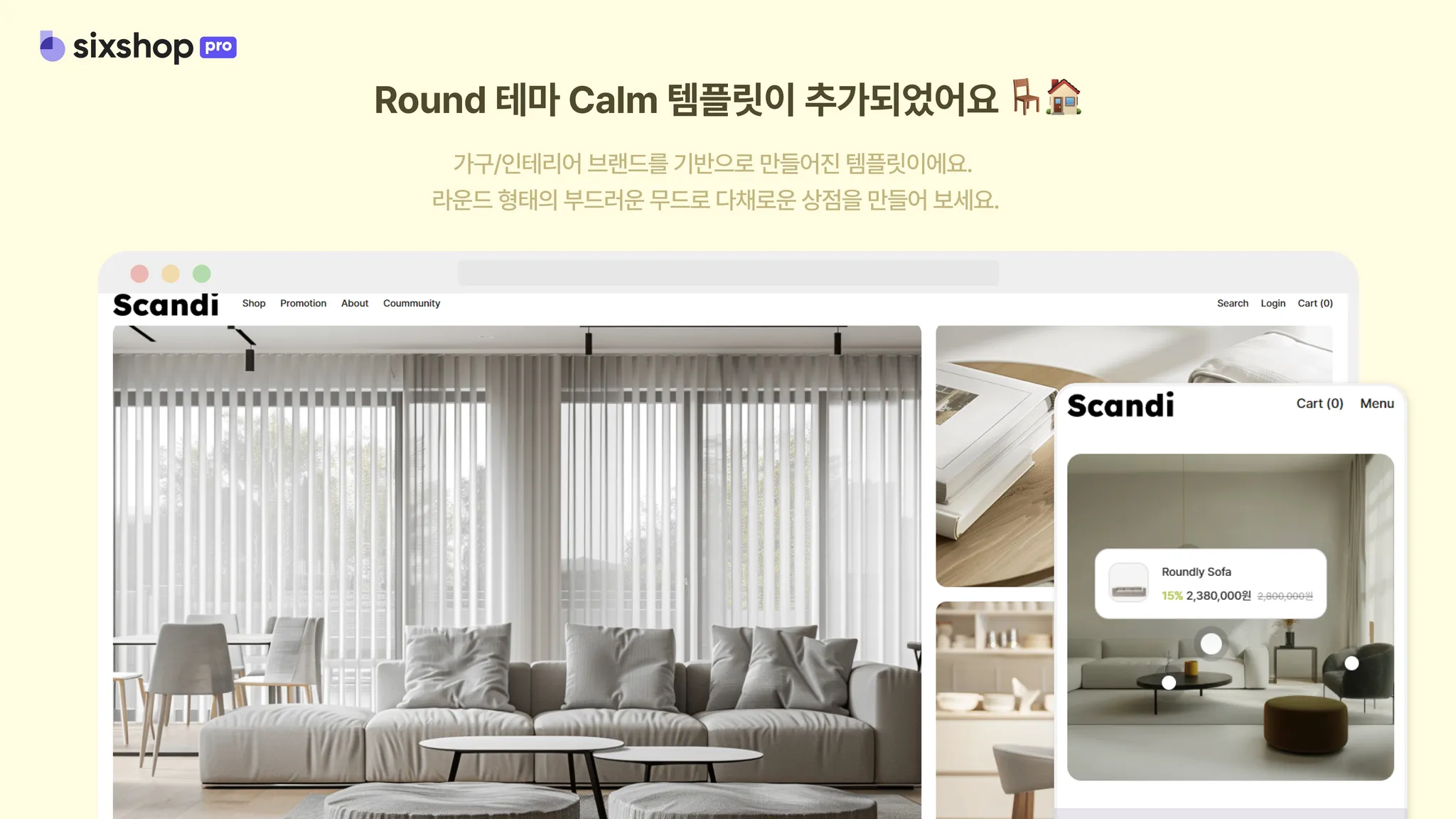 Calm 템플릿은 가구/인테리어 브랜드를 기반으로 제작되었어요.